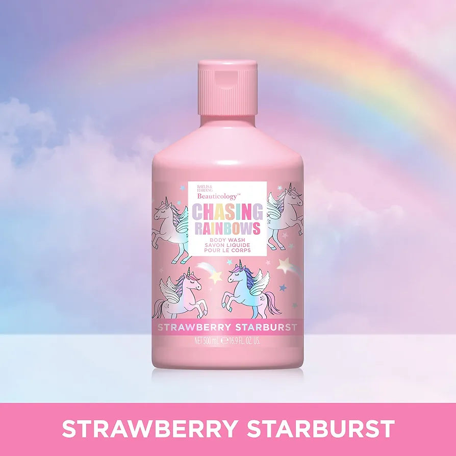 Lather up in a wash of unicorn vibes, a heavenly strawberry starburst and gentle cleansing leaving you to chase rainbows like the unicorn you are. Mermaid tails and unicorn horns, the glisten of iridescent bottles, positive sentiments and sweet dreamlike scents, this enchanted bathing collection is sprinkled with sweet and fruity fragrances that bring a sense of magic to taking a shower, scrubbing those hands or soaking in a tub. Spread those unicorn wings or splash around like a mermaid. Soak in a dreamlike bubble bath or take a shower chasing rainbows. However you be you, drift away with Beauticology. Heavenly strawberry starburst, smelling fresh, clean, and deliciously sweet.
