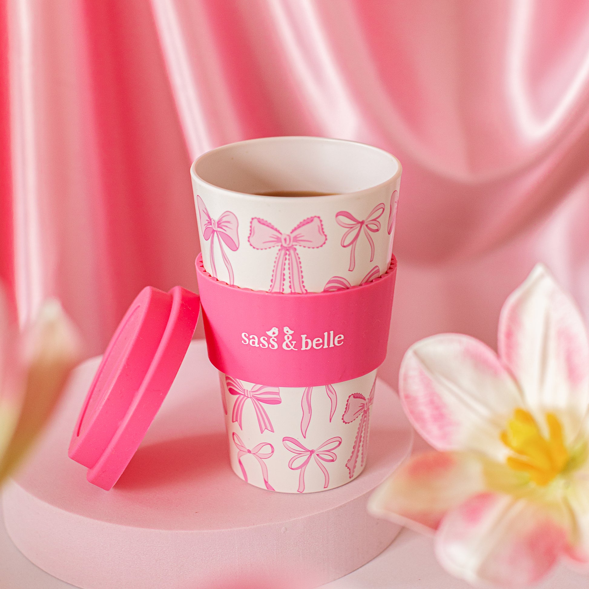 The Bow Travel Coffee Cup offers a playful bow motif with insulated walls to keep beverages hot or cold during your daily adventures.